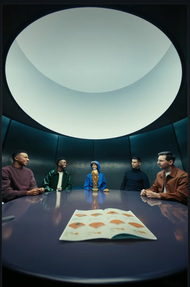 The commercial opens with a simple yet symbolic setup. The four football superstars sit around a round table, each representing a different generation, style, and footballing journey. Despite their differences on the pitch rivalries, leagues, and even continents here, they are united by something much simpler: building a LEGO version of the iconic World Cup trophy.